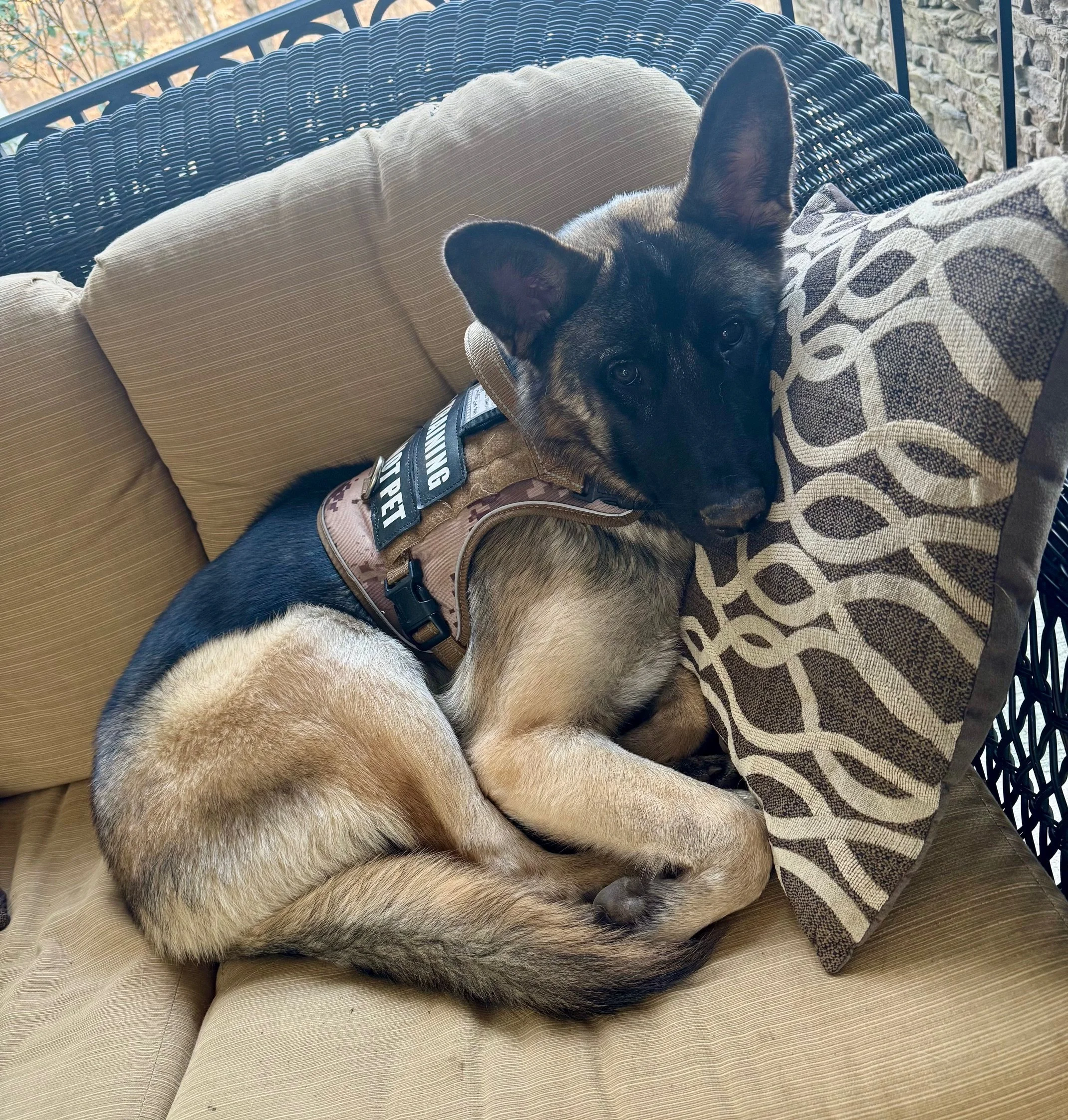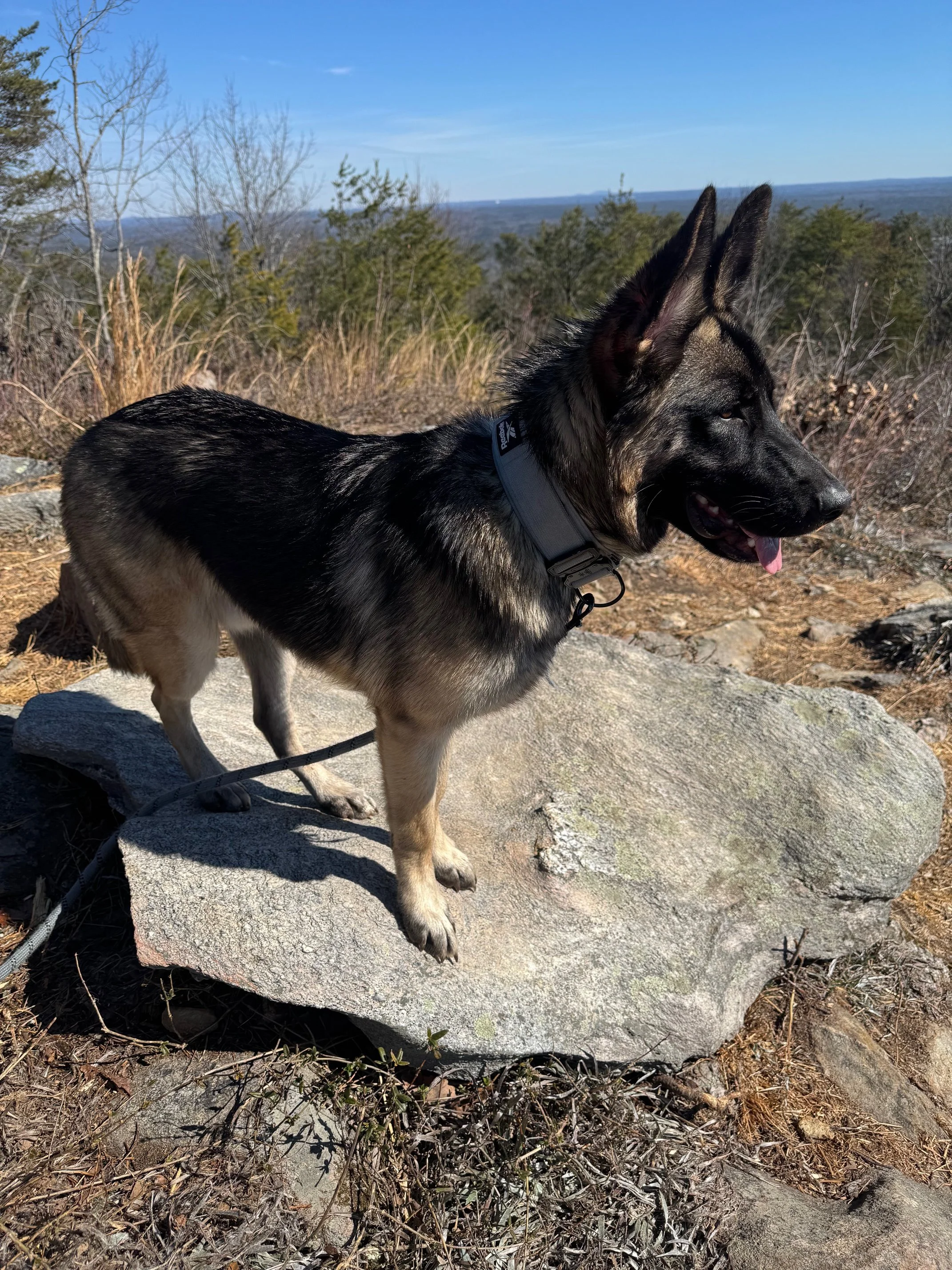 Oso is an 8.5-month-old black and tan male GSD who weighs 55 lbs.